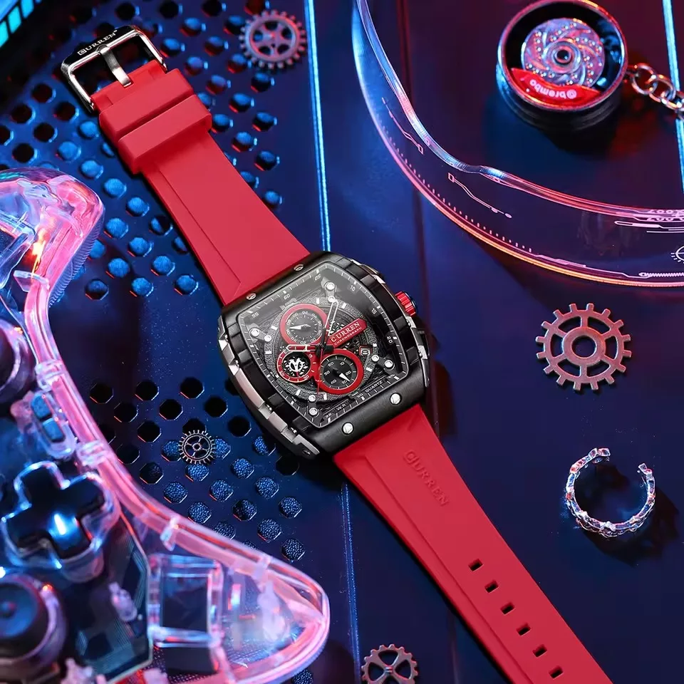 Curren 8442 Silicone Strap Auto Date Chronograph Watch