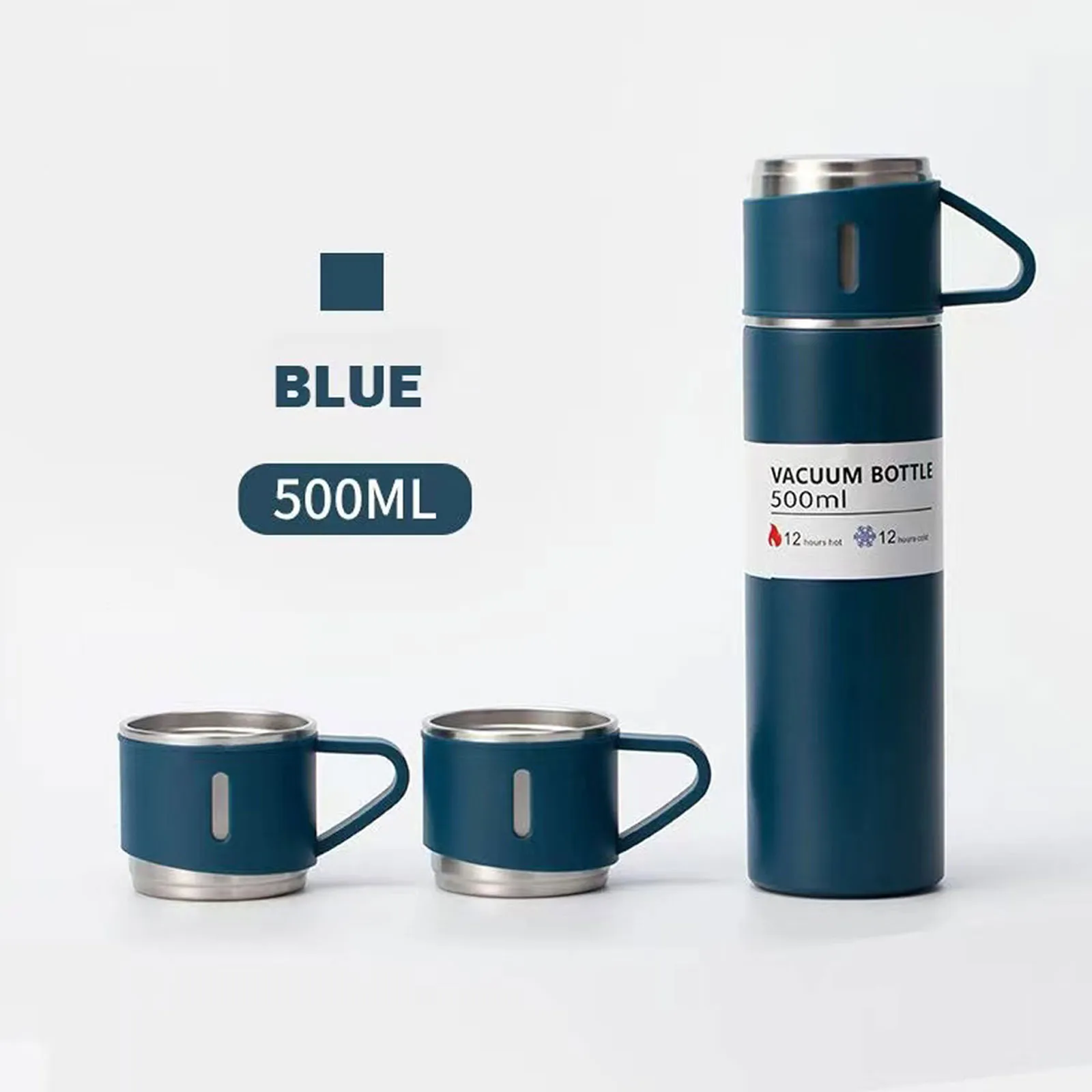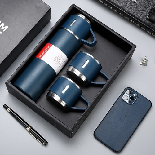 Vacuum Flask (500ml) With 2 Cup Lids Double Layer Coffee, Tea, Milk Travel Water Bottle Gift Set
